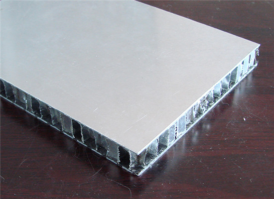 蜂窩板主要包括氟碳輥涂烤漆、鉻化層、鋁板、粘性膠膜、鋁蜂窩芯、粘性膠膜 、聚酯烤漆、鋁板組成。